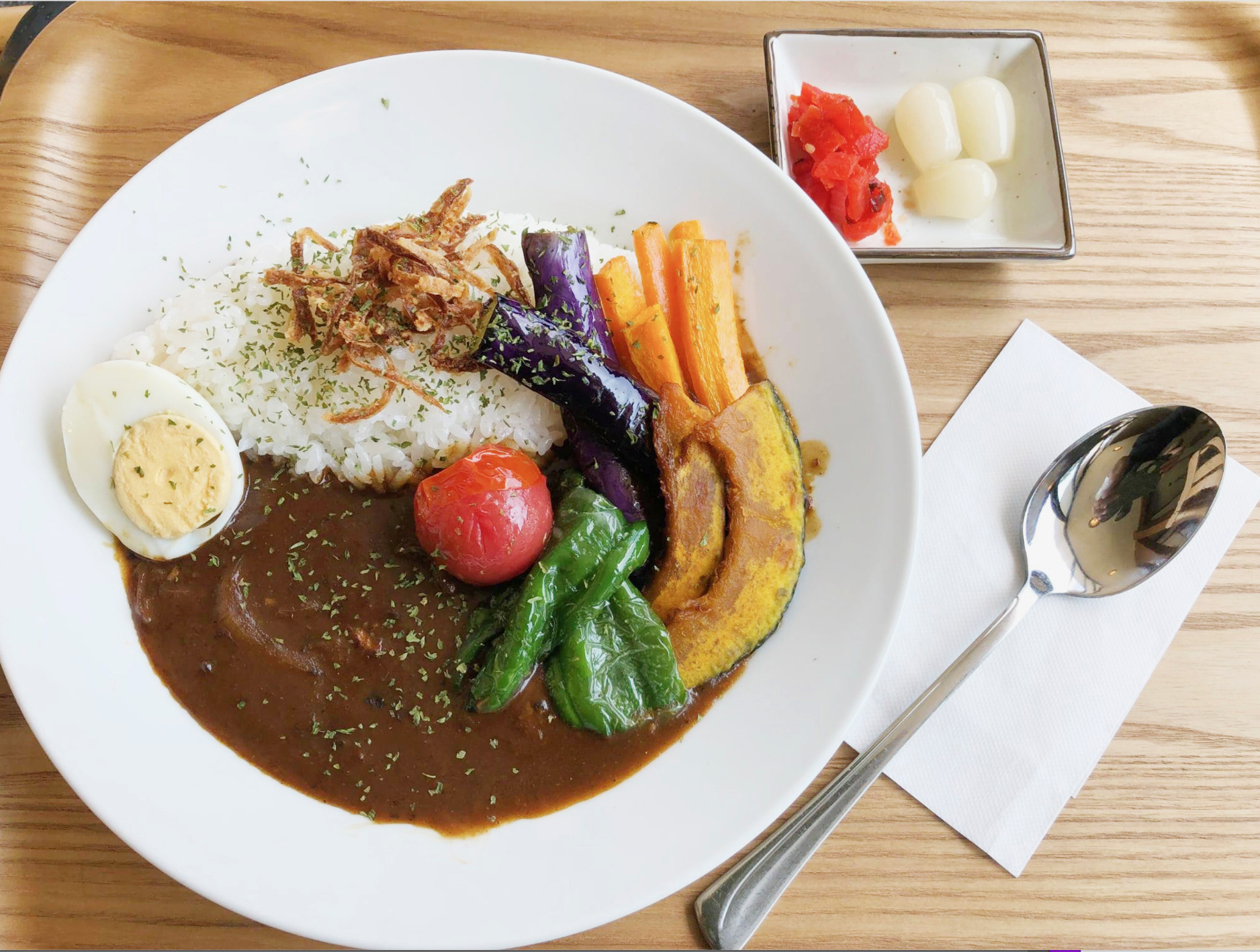 レストランでは、地元の野菜を使ったカレーなどボリューム満点でヘルシーなメニューをご用意しております。