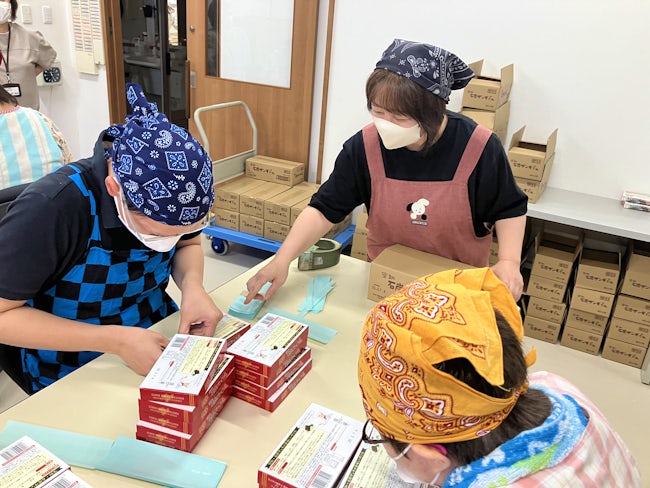 仕事内容はどれも簡単で、障がいのある方でもできる単純作業を見守りながらサポートする仕事。お話しながら楽しく作業をしています。