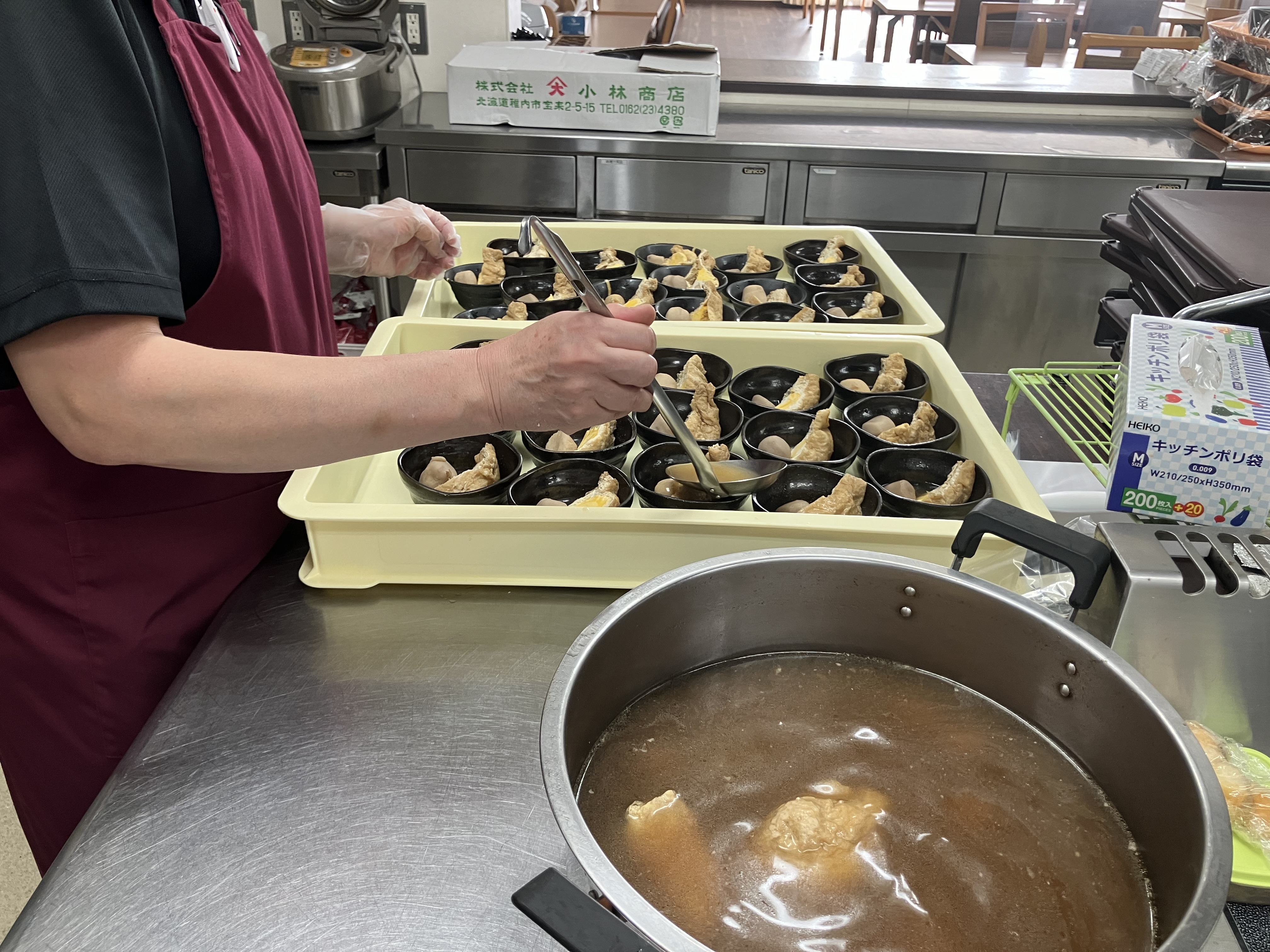 作る量は朝と夕方が30〜40食、昼食は60〜70食となります。最初は量が多いため少し戸惑うこともあるかもしれませんが、作業はシンプルなのですぐに慣れるかと思います。