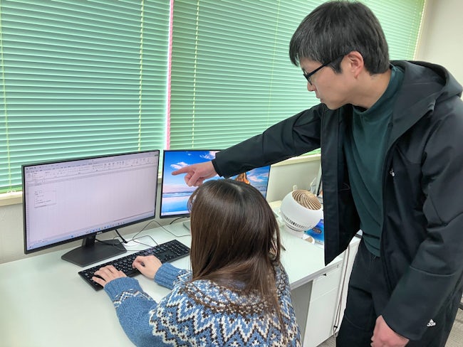 【教えているシーン】こんな風に作るんだよ!と教えているシーンです。社労士事務所なので、色々な書類をみたり、作ったりします。未経験者でもしっかり覚えると役立つ知識が沢山あります♪